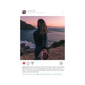 Bestellen Sie jetzt Ihr personalisiertes Poster im Instagram-Stil und gestalten Sie eine kreative und moderne Erinnerung an Ihre schönsten Momente. Perfekt für Freunde, Familie oder als Dekoration für Ihr Zuhause.