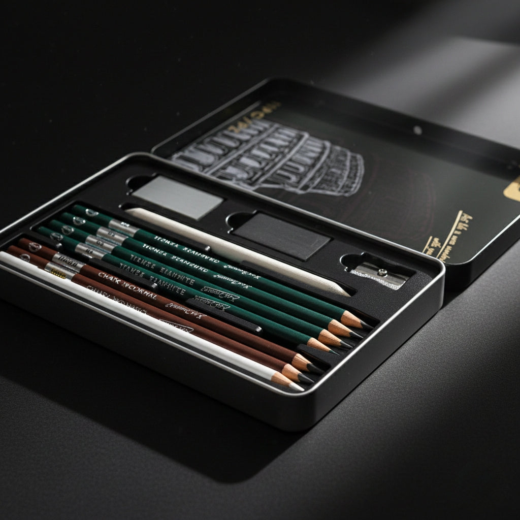 Dieses vielseitige Zeichenset unterstützt Sie perfekt beim Skizzieren und Zeichnen – von feinen Konturen bis zu starken Kontrasten. Die stabile Metallbox schützt das Zeichenmaterial zuverlässig und sorgt dafür, dass alles schnell griffbereit bleibt – ideal auch für unterwegs.